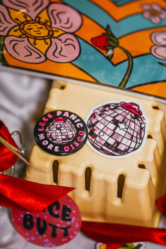 Less Panic More Disco Pin Button