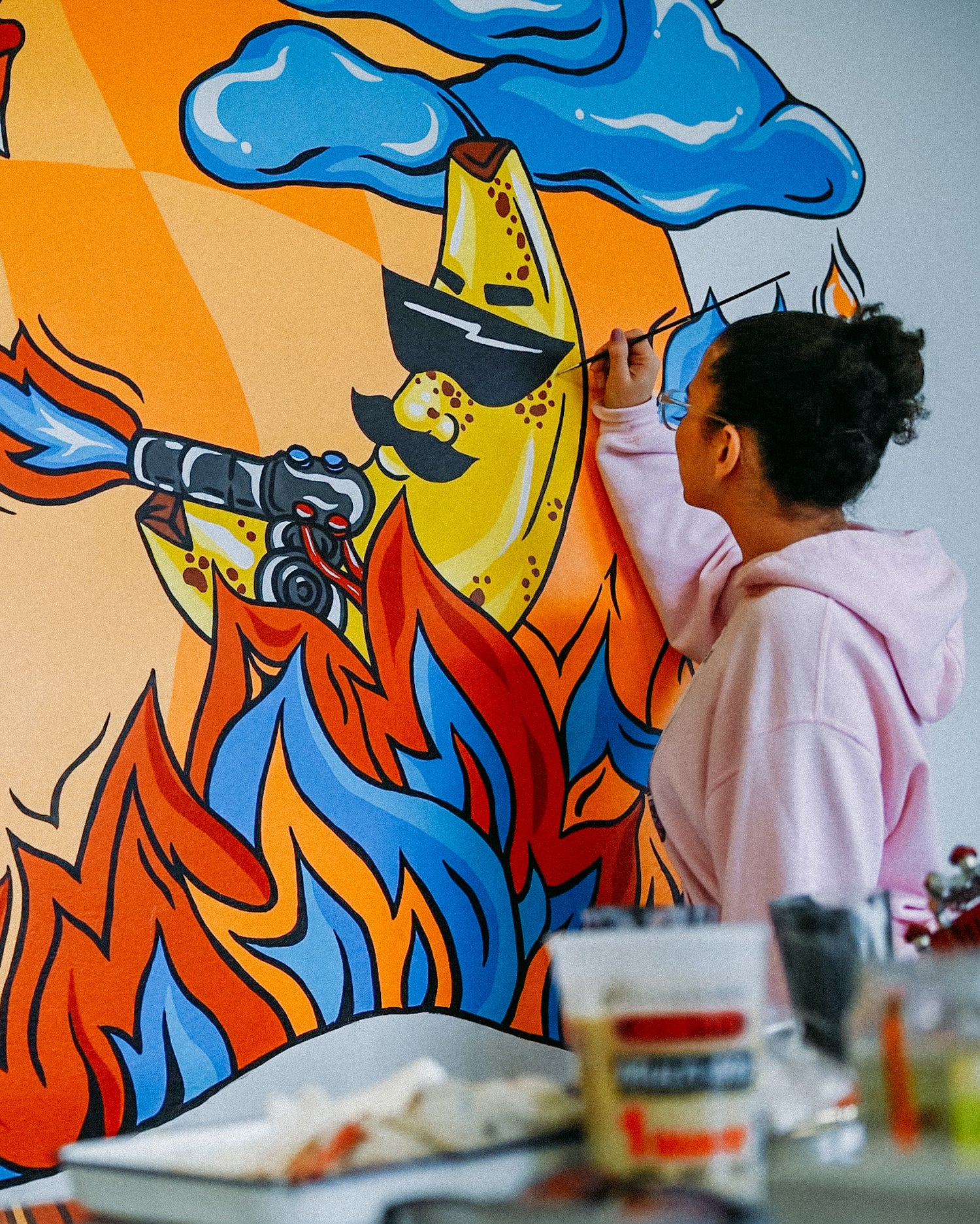 I specialize in creating indoor murals for both commercial and residential spaces. My style is distinctively illustrative, with a hint of groovy-retro vibes. I love incorporating bright colors, fun characters, and playful scenes into my work, aiming to infuse each space with a unique and engaging atmosphere.